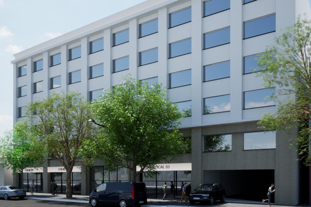 Próximo proyecto de hotel de 5 pisos, 72 habitaciones, 3 locales comerciales en el primer piso y dos pisos de estacionamiento subterráneo.