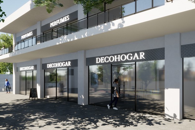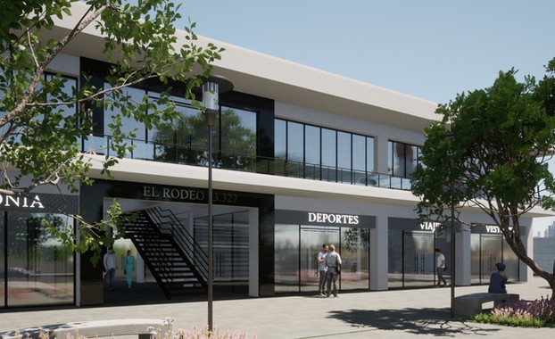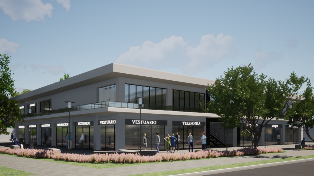 Centro comercial estilo ‘strip center’ de 2 pisos de locales comerciales, bodegas y 2 pisos de estacionamiento subterráneo.